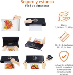 Bajo coste: Uno de los mayores atractivos de esta envasadora es su precio competitivo. A diferencia de otros modelos más caros del mercado, la Amazon Basics ofrece las funcionalidades básicas a una fracción del coste, lo que la convierte en una opción accesible para la mayoría de usuarios.