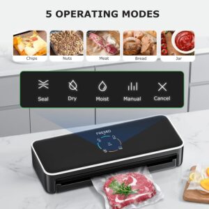 Modos de sellado y vacío: La Fresko V3 ofrece una variedad de modos que te permiten ajustar el nivel de vacío y sellado según el tipo de alimento. Esto incluye un modo «normal» para alimentos secos y uno «suave» para productos delicados, como frutas o alimentos que podrían aplastarse con el vacío total. También cuenta con una opción de solo sellado, ideal para bolsas que no necesitan vacío pero que deseas cerrar herméticamente.