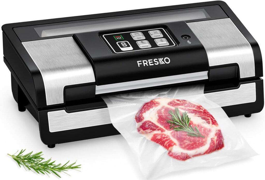 - Selladora al vacío de alto rendimiento: la máquina selladora al vacío FRESKO con tecnología de bomba profesional, eficiente y duradera, garantiza una conservación de alimentos rápida y de calidad profesional para uso doméstico.
